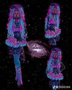 Typically using bold makeup looks and colors like pink, blue, and purple